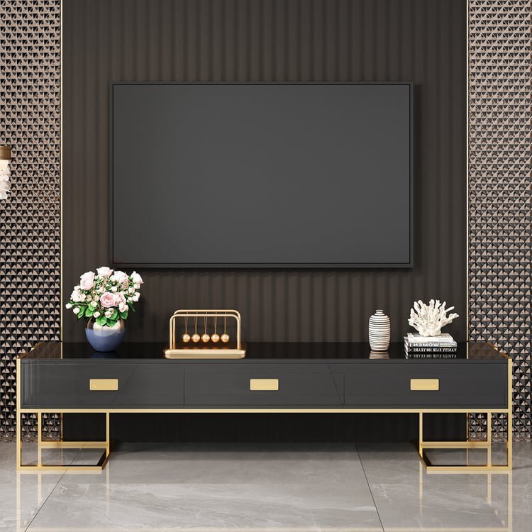 The gold chrome finish adds a touch of glamour, while the modern tv stand and coffee table set structure provides lasting quality.