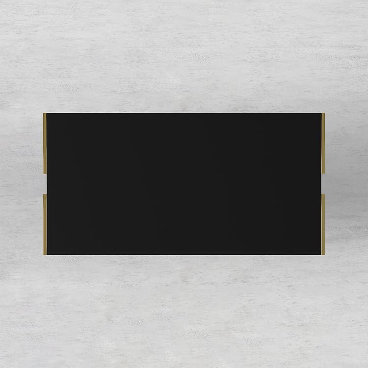 Crafted from glossy MDF wood and enhanced with golden chrome-plated metal, this set is perfect for any contemporary home.