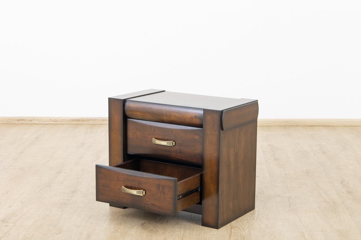Crafted from durable solid rubber wood, this 2-drawer nightstand offers a minimalist design that complements any bedroom.