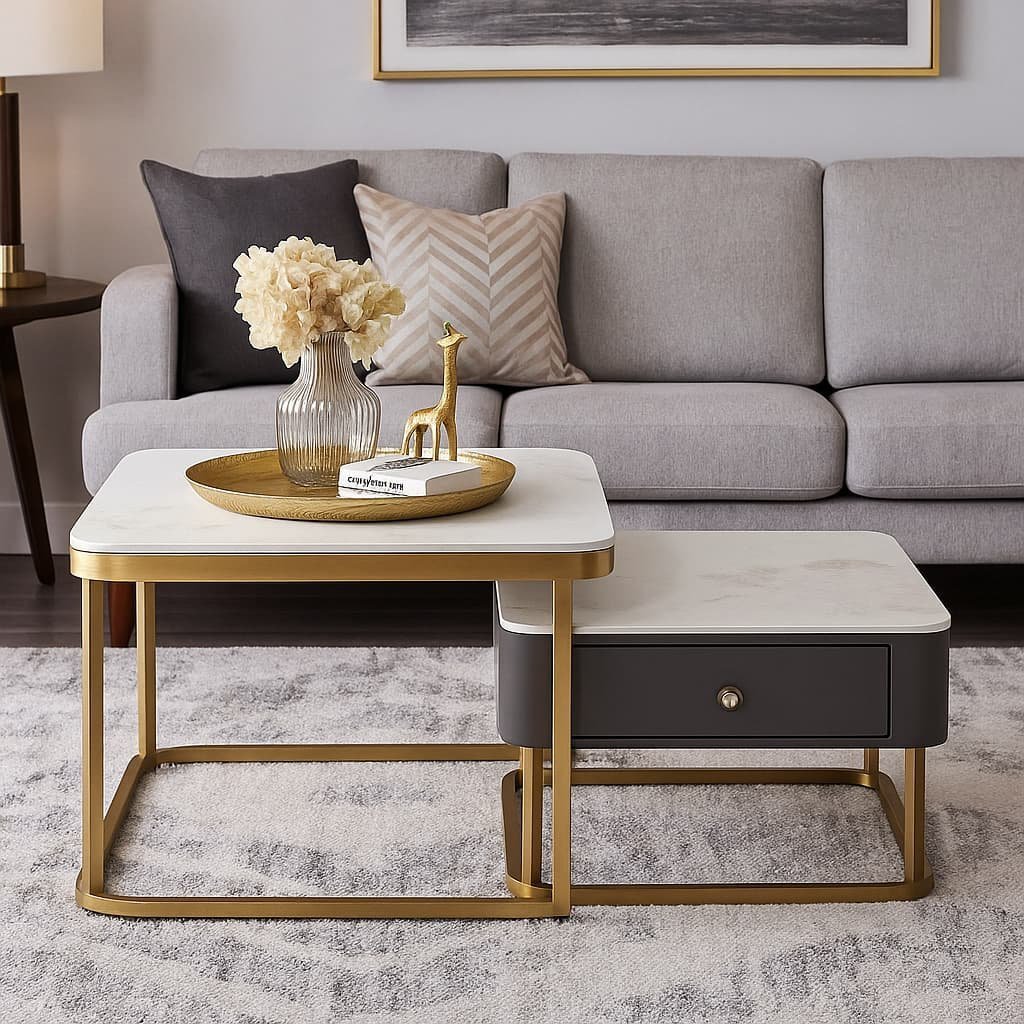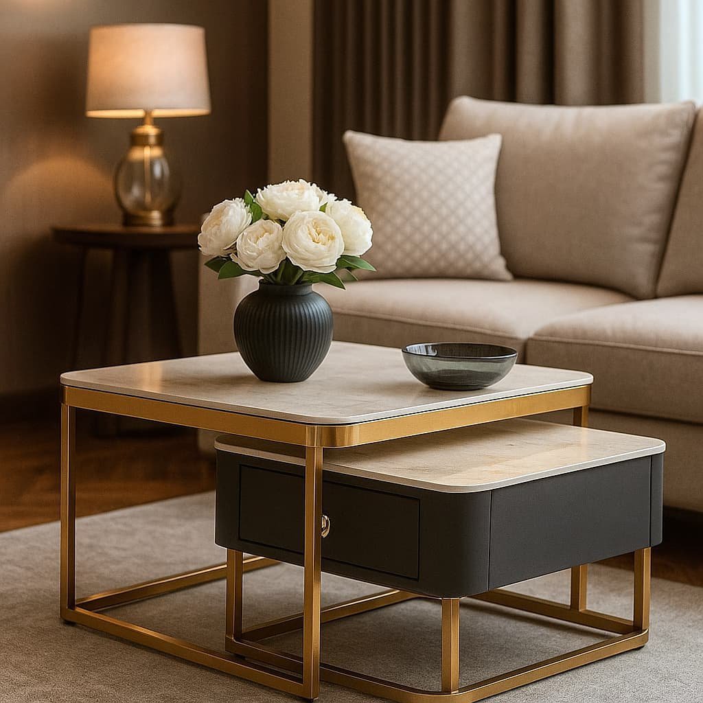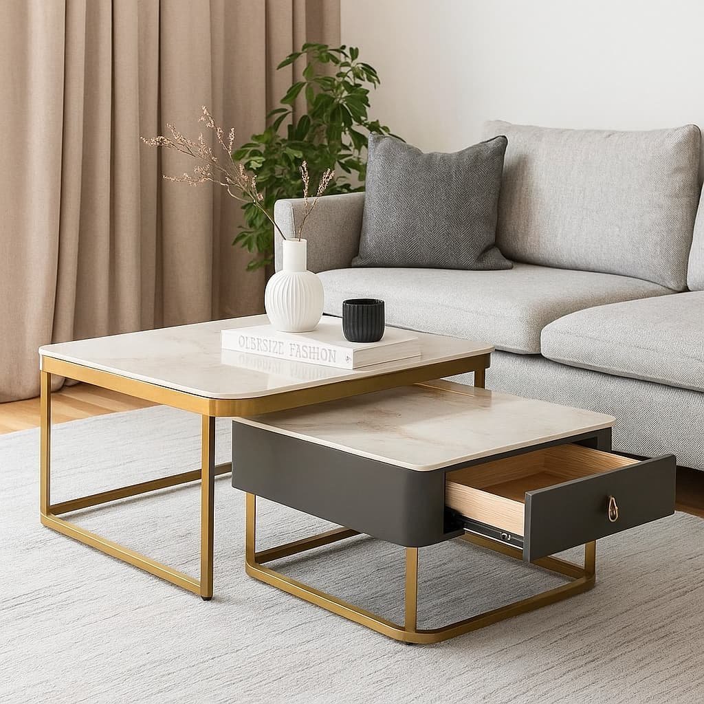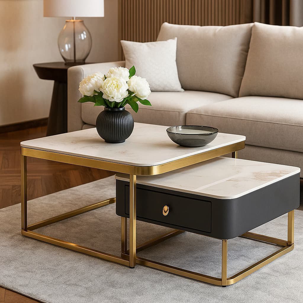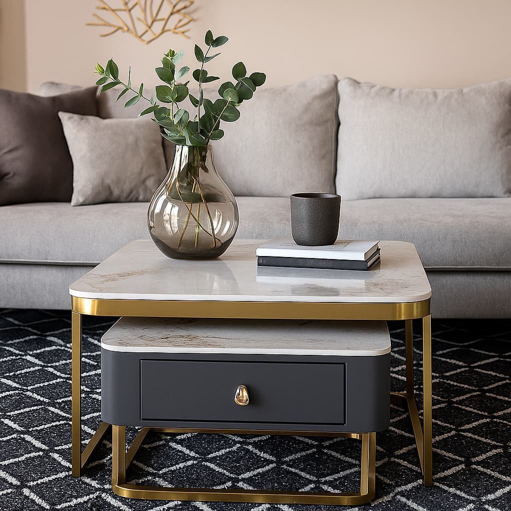 This modern nesting coffee table set is perfect for pairing with contemporary sofas, sectional couches, or luxury lounge chairs. Whether you’re showcasing decor, serving coffee, or organizing essentials, the Luxestone Twin Table delivers both style and substance.