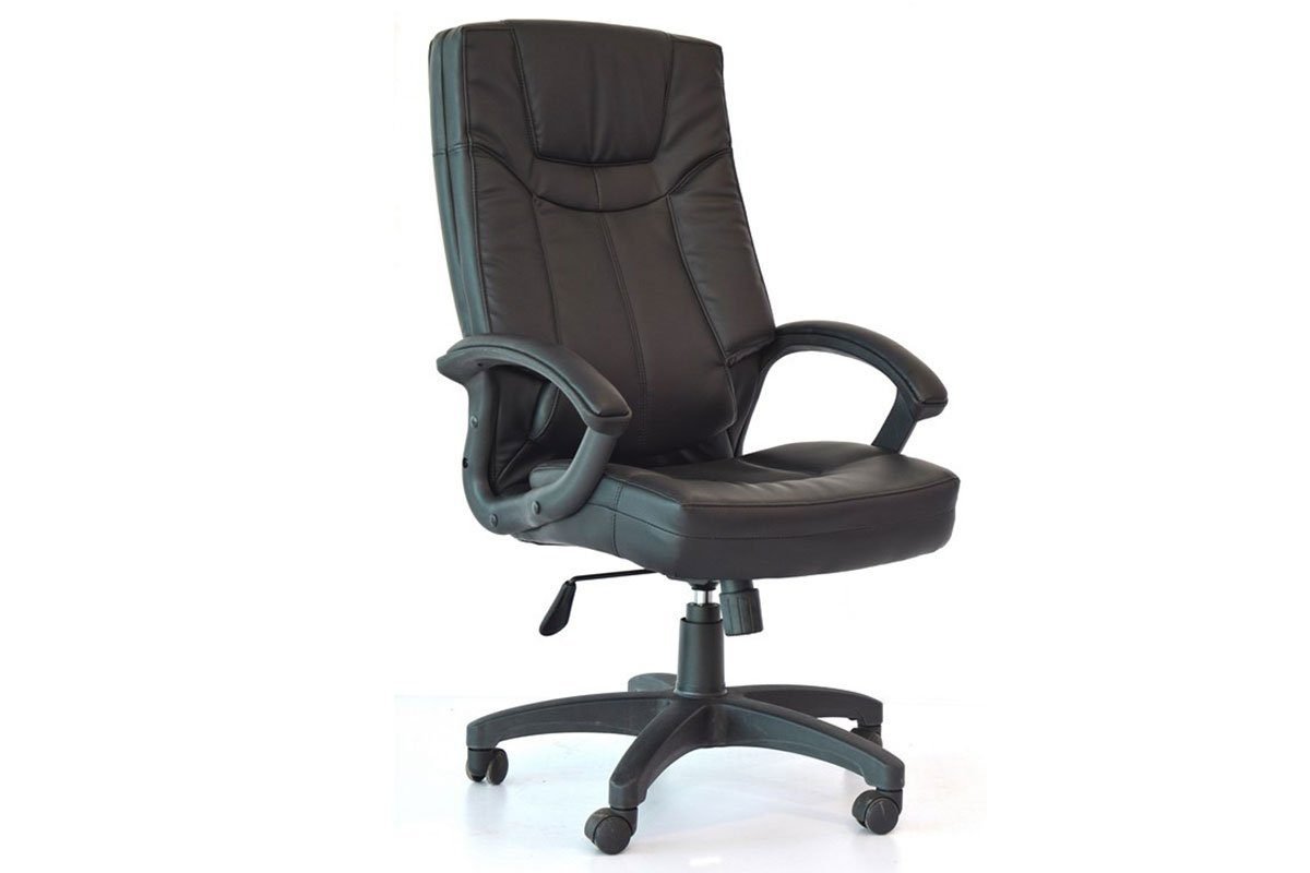 This premium leatherette office chair features a supportive high back design and plush leatherette padded nylon arms for exceptional comfort.