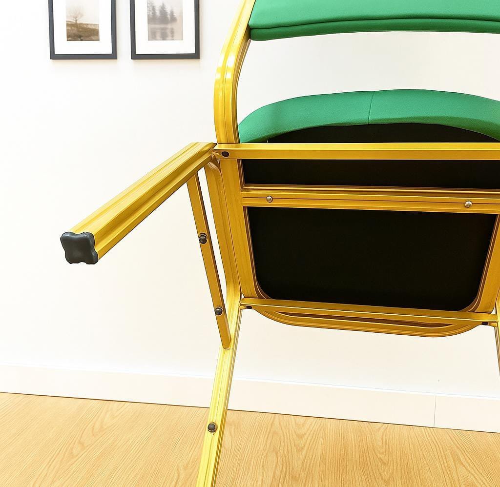 Its stackable structure allows for easy setup and storage, while the green fabric upholstery adds a fresh, modern touch to any interior.