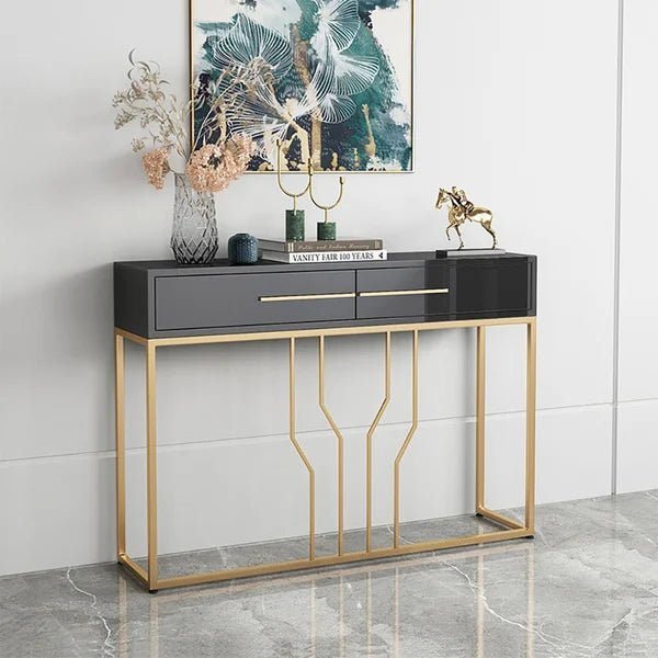 This luxurious console table offers a touch of opulence and functional storage.