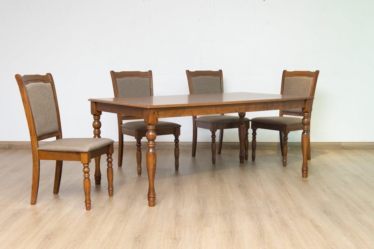 Crafted from solid rubber wood, this dining room set ensures durability and style, making it a popular choice for those seeking a dining table with chairs that combines both functionality and a touch of elegance.