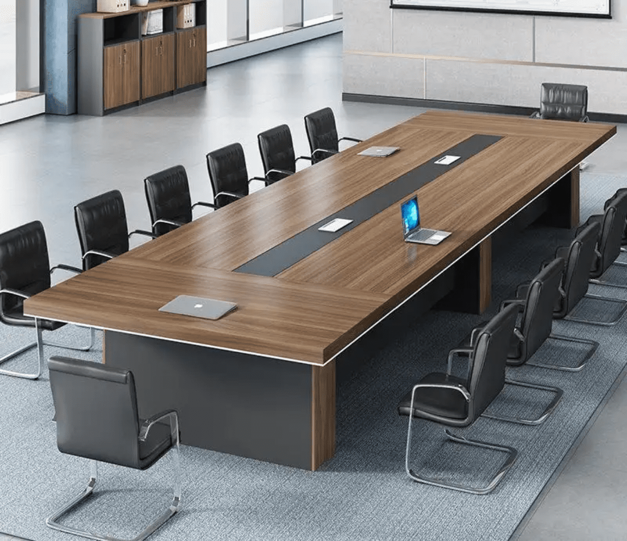 Designed for impactful meetings and presentations, this large rectangular conference table comfortably accommodates 14-16 people, making it ideal for boardrooms and meeting rooms.