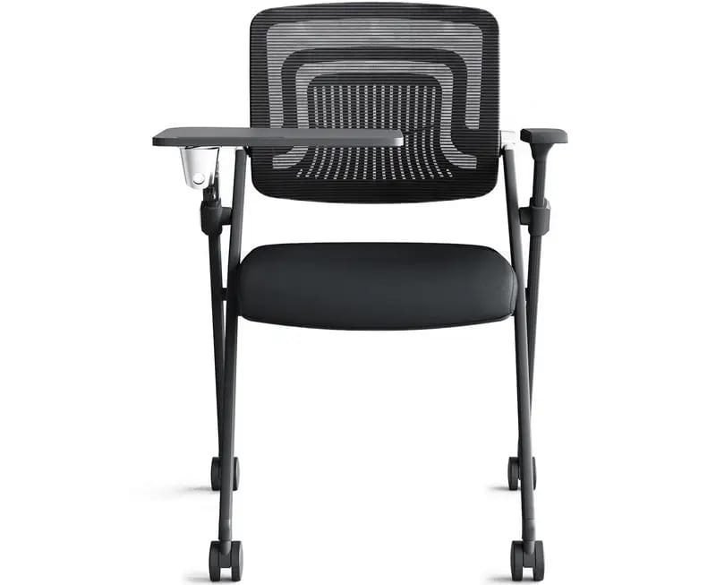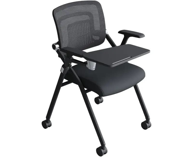 This comfortable training chair features an integrated writing pad, ideal for note-taking and presentations, enhancing productivity and engagement.