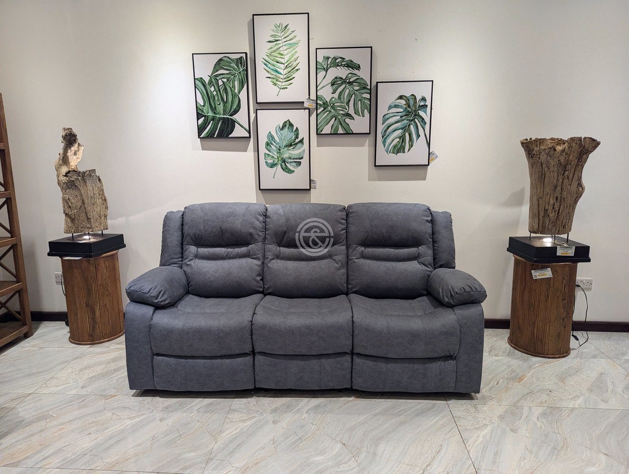 Experience Ultimate Comfort with this Tranquil 6 Seater Grey Fabric Recliner Sofa Set.