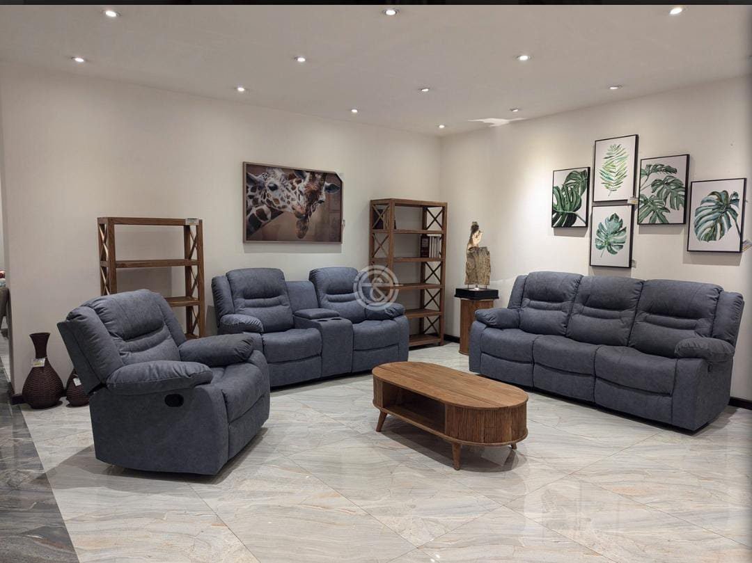 Upgrade your living room with the Tranquil 6 Seater Grey Fabric Recliner Sofa Set – where comfort meets style!